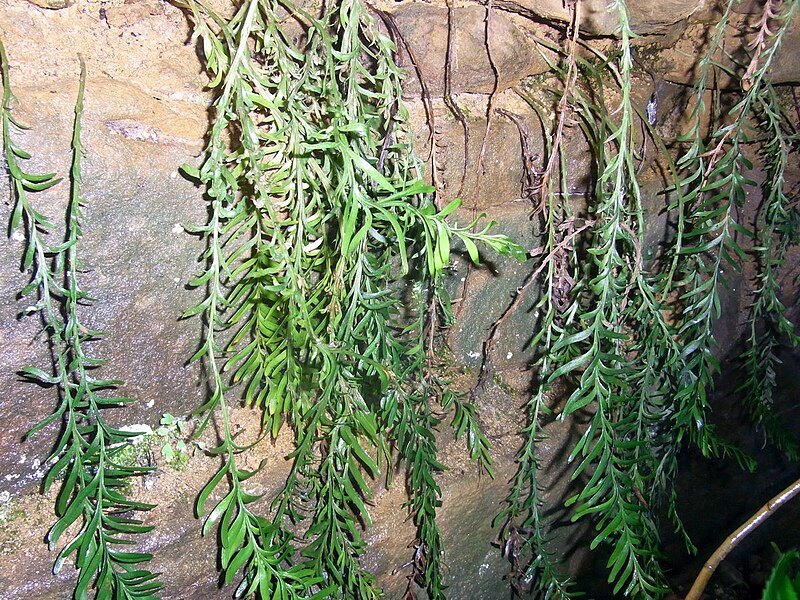 The fork fern concerned is the ‘hanging fork fern’, Tmesipteris oblanceolata ssp. linearifolia (aka T. truncata),from New Caledonia, a “French unique collectivity in the southwestern Pacific Ocean, about 900 miles (1,500 km) east of Australia” (DL Shineberg & Sophie Foster).